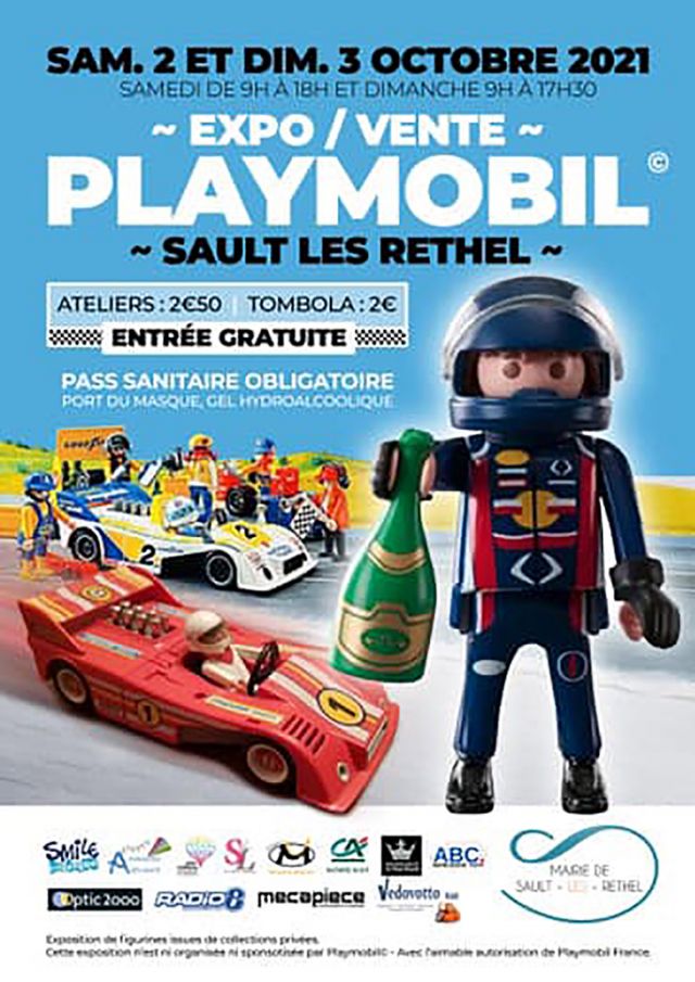 02/10/202103/10/2021 Sault-lès-Rethel (08300)L'association Smile Compagnie vous donne rendez-vous le 2 et 3 Octobre 2021 pour son Expo / Vente de Playmobil.