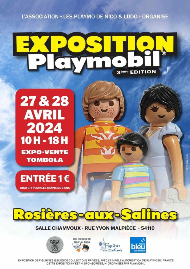 27/04/202428/04/2024 Rosières-aux-Salines (54110)L'association Les Playmo de Nico & Ludo organise sa 3ème édition exposition Playmobil à Rosières-aux-Salines (54).