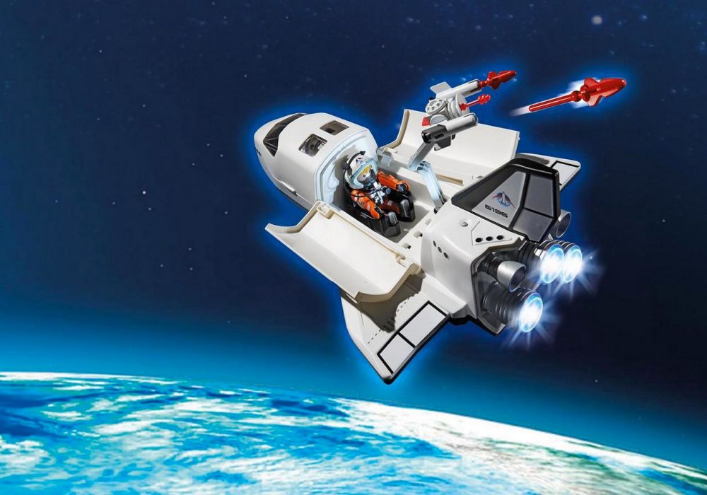 Retour de mission, la navette spatiale va bientôt atterrir ! Navette spatiale avec deux personnages et un lance-missiles. La navette et la cabine de pilotage s'ouvre. Le lance-missiles tire des projectiles. Avec effets lumineux (nécessite 3 piles 1,5V AAA non fournies). Les 3 références : 6195 Base de lancement avec fusée, 6196 Navette spatiale et spationautes et 6197 Satellite avec laser et météoroïde, peuvent être combinées ensemble !