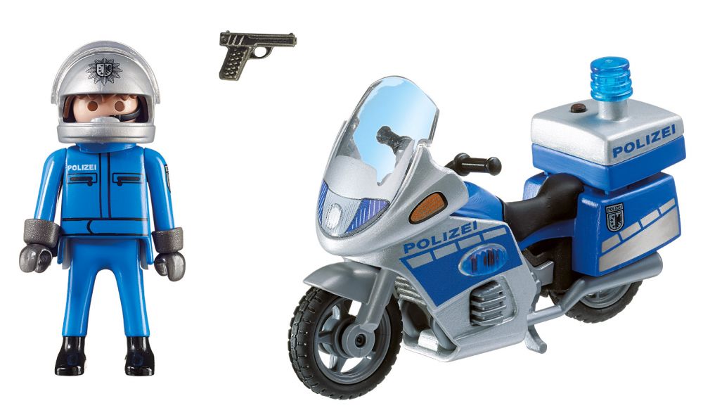 Contient une moto et une personnage. La lumière de la moto clignote (pile incluse).
