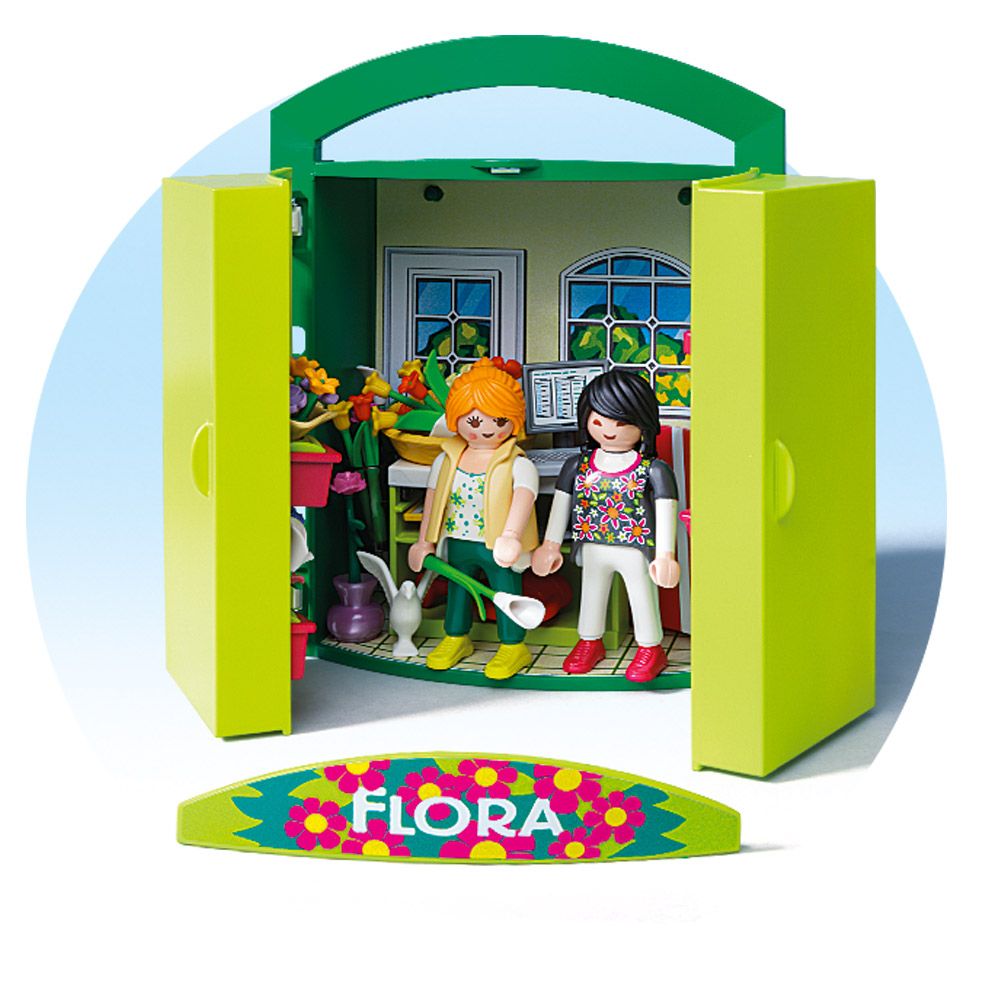 Contient une sélection colorée de jolis bouquets de fleurs et de vases. Tous les accessoires et figurines peuvent être rangés dans le coffre. Grâce à sa poignée pratique, le coffre peut être emporté partout.