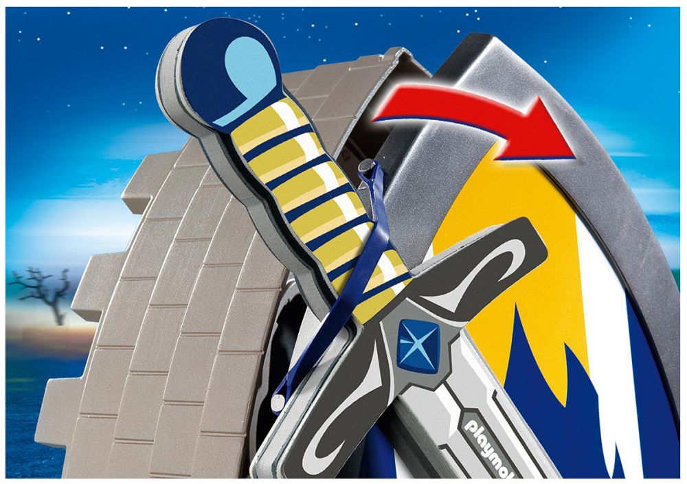 Prêt pour la bataille ? Fort avec quatre chevaliers, un décor de château médiéval, un cheval et de nombreux accessoires (épées, boucliers, balistes ...). Comprend aussi une épée et un bouclier à la taille de l'enfant. S'ouvre pour jouer et permet d'y ranger les personnages et accessoires, pour l'emporter partout.