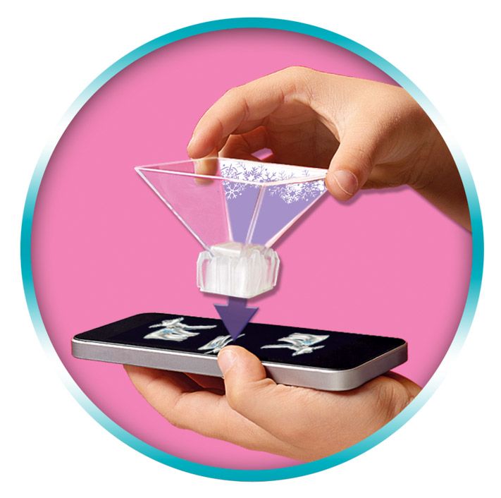 Avec chouette hulotte et superbes effets d’hologramme. Avec un smartphone ou une tablette et la nouvelle application vidéo Playmobil, le projecteur en forme de pyramide crée un hologramme au centre de la pyramide. L’une des faces de la pyramide à hologramme est entièrement recouverte d’un imprimé et sert d’arrière-plan pour l’hologramme. Le socle en cristal sert de support pour la pyramide à hologramme. La surface caoutchoutée protège l’écran.