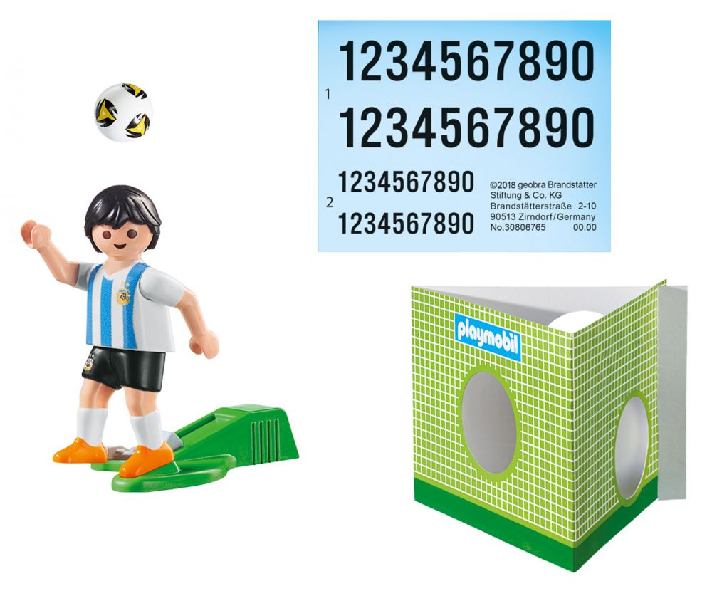 Joueur de football avec fonction de tir à une main. Maillot avec l'emblème de l'équipe d'Argentine. Comprend un ballon et une cage de foot pour s’entraîner aux tirs au but.