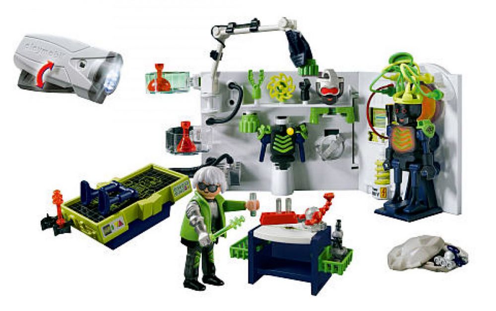 Le docteur Maléfice et son Robo-Gang ont inventé des capsules Chaos, un redoutable virus ! Ils veulent propager ce virus à travers le monde… Laboratoire avec un savant, deux robots et de nombreux accessoires (table avec éprouvettes et microscope, table de montage pour les robots, armes, bouteilles et autocollants réactifs). Lampe multifonctions : lampe UV pour lire des messages secrets et dynamo pour faire clignoter le coeur des robots indiquant ainsi qu'ils sont prêts à accomplir leur mission. Elle se branche aussi sur le laboratoire pour l'illuminer.