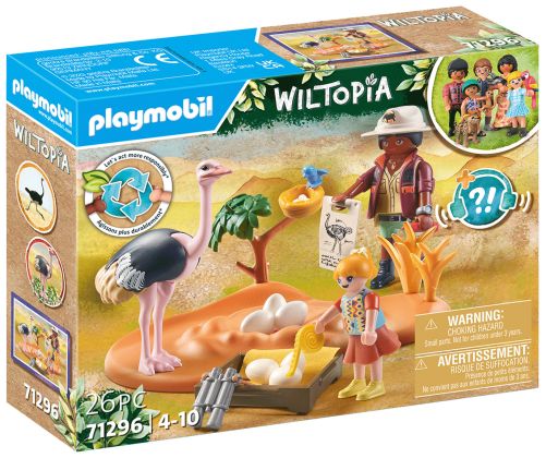 L’autruche vient tout juste de pondre ses œufs ! Il va falloir les couver pour qu’ils puissent éclore rapidement. Nos deux exploratrices PLAYMOBIL viennent s’assurer que tout se passe bien et que les œufs ont une taille correcte. Mais l’autruche va-t-elle les laisser s’approcher de ses œufs ? Le coffret comprend un personnage adulte, un personnage adolescent avec une toute nouvelle taille (5.75 cm), une autruche dont on peut retirer les pattes pour la faire couver ses œufs, un nid d’autruche, des œufs, et d’autres accessoires.
